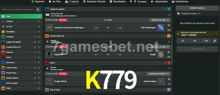 A aposta K779 oferece aos jogadores a experiência mais conveniente de apostas em eSports!